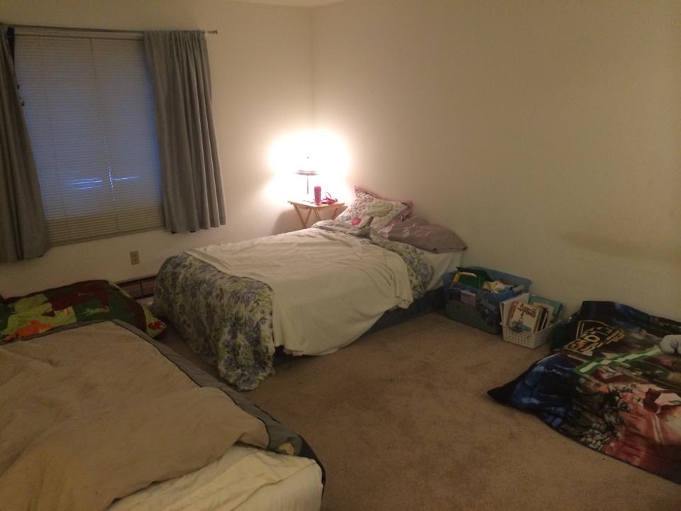 So for the next two weeks we’re all sharing a bedroom while packed boxes go in the other one. It’s…actually kind of cool. Like we’re at summer camp. Ohhhh I’ll be glad when this is over though.