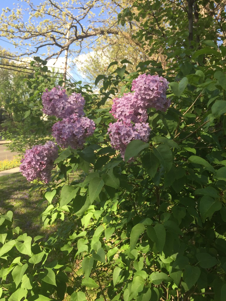 The kids and I just watched a video of Dad from last year and then Amanda looked out the window and said, “Aren’t those lilacs?” In our front yard, where we’ve lived for almost 3 years and have never had lilacs blooming on this bush. Scott says it might just be because the soil is very acidic and they haven’t had a chance to bloom before now. Alex says it’s a sign that Grandpa is looking out for us. It makes me happy to have them there.